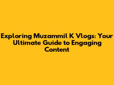 Exploring Muzammil K Vlogs: Your Ultimate Guide