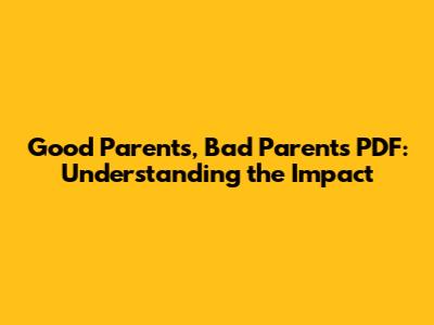 Good Parents, Bad Parents PDF: Understanding The Impact