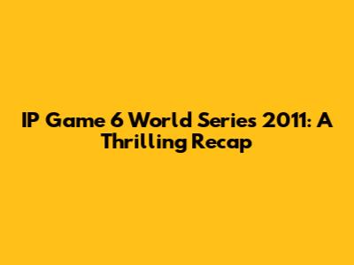 IP Game 6 World Series 2011: A Thrilling Recap