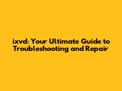 Ixvd: Your Ultimate Guide To Troubleshooting And Repair