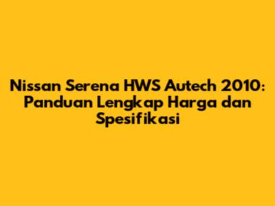 Nissan Serena HWS Autech 2010: Kalian semua pasti penasaran kan, berapa sih harga Nissan Serena HWS Autech tahun 2010 sekarang? Nah, artikel ini bakal kasih kalian informasi lengkap seputar harga, spesifikasi, dan berbagai hal menarik lainnya tentang mobil MPV (Multi-Purpose Vehicle) yang satu ini. Jadi, siap-siap buat dapat info yang kalian butuhkan, ya!