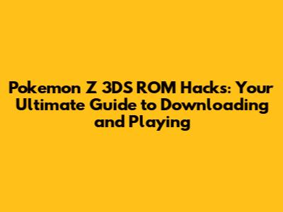 Pokemon Z 3DS ROM Hacks: Your Ultimate Guide To Downloading And Playing