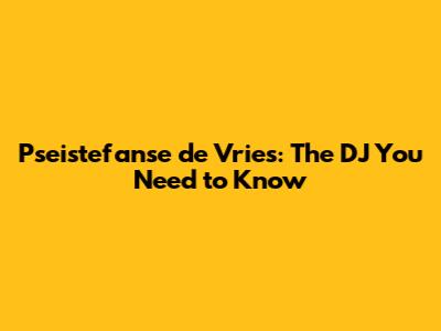 Pseistefanse De Vries: The DJ You Need To Know