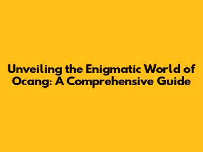 Unveiling The Enigmatic World Of Ocang: A Comprehensive Guide